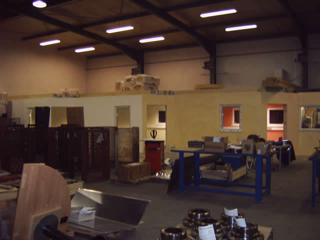 Aufbau von Büroräumen in einer bestehenden Lagerhalle