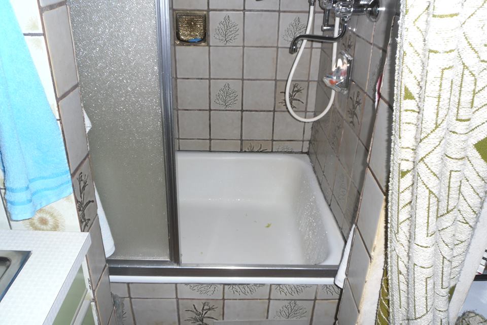 Hier wird für eine 94 Jährige Dame der Einstieg erleichtert, mit Sitzfunktion und Edelstahlhaltegriffen